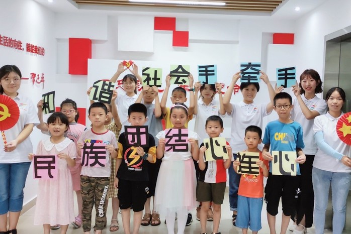 7月19日至23日,团队成员们本着回报社会、服务社会的宗旨,以促进儿童全面发展为目标,将合肥滨湖和园社区作为据点,结合社区实际情况,开展义务支教活动。该团队根据教育学院专业特色及学生兴趣开设手工、声乐、美术等特色课程,以团体心理辅导为载体,聚焦社区儿童的身心健康,关注儿童的健康成长。同时带领青少年进一步了解学习党史,激发爱党爱国之情,进一步促进民族团结、弘扬传统文化、传承红色精神。