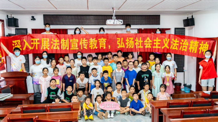 全民普法是全面依法治国的长期基础性工作,为深入学习习近平法治思想,贯彻落实“八五”普法规划,进一步增强儿童的安全法制观念,引导青少年牢固树立“以遵纪守法为荣、以违法乱纪为耻”的荣辱观,8月15日,“青春有我,共护朝阳”实践团队开设了“普及法律知识,构建和谐社会”的普法特色课程。志愿者们在支教过程中结合专业优势,积极做普法教育的践行者,在官亭当地开展了一系列普法宣传活动。