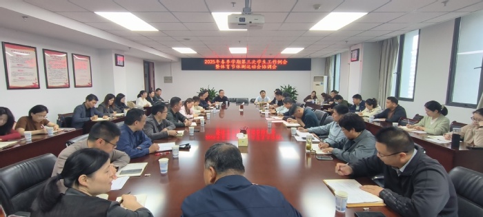4月22日,学校在行政楼807会议室召开2025年春季学期第三次学生工作例会暨体育节体测运动会协调会。党委委员、副校长白义香出席会议并讲话,会议由学生处处长丁增云主持。