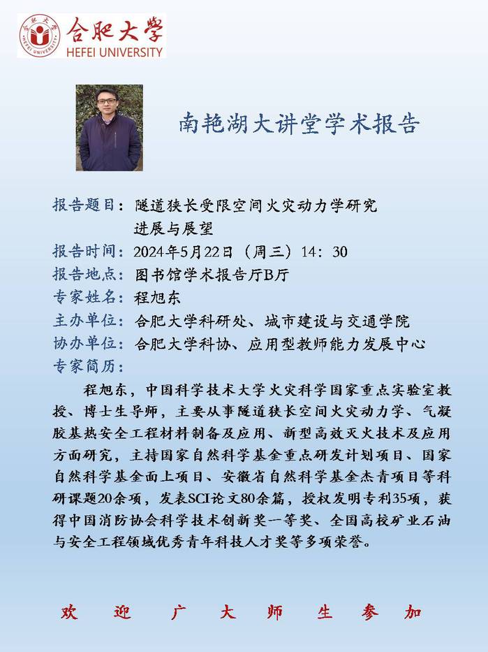 【南艳湖大讲堂】隧道狭长受限空间火灾动力学研究进展与展望