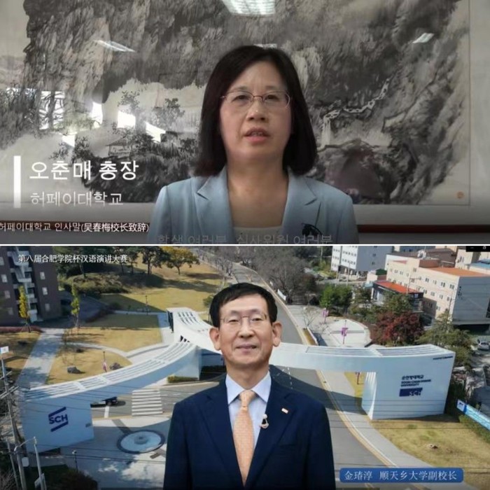 11月7日,由合肥学院主办、韩国顺天乡大学承办的第八届“合肥学院杯”汉语演讲大赛在韩国顺天乡大学成功举办。来自顺天乡高中、仁川世元高中等多所学校的韩国学生参赛,最终有15名选手进入决赛。院长吴春梅和韩国顺天乡大学副校长金瑃淳通过视频参加决赛开幕式并致辞。