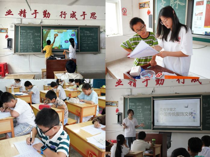 语言文化与传媒学院暑期“三下乡”实践团队志愿者们组建“爱洒乡村 教育同行”教学团队。教学团队分为书画组、英语组、国学组和歌舞组。教学内容以传统文化为主,教学时间从7月6号持续到7月13号。